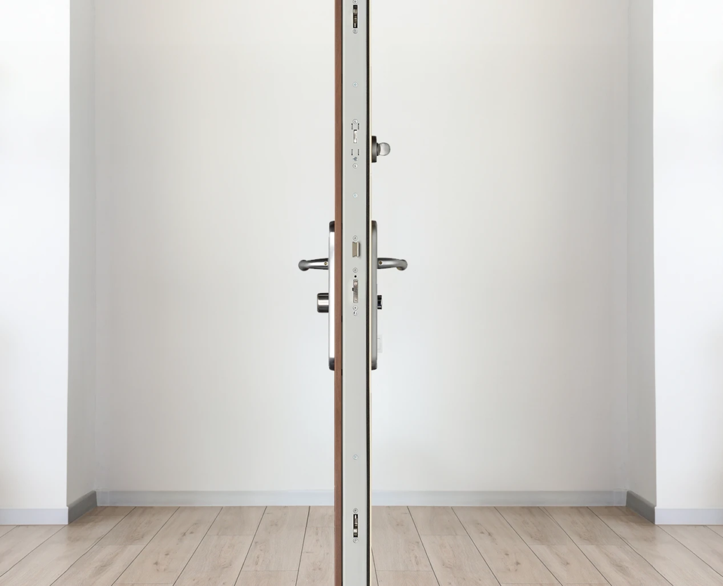 Outre son esthétique et sa robustesse, le bloc-porte Foxeo HiS se distingue par sa résistance au feu et ses propriétés d’isolation phonique et thermique, assurant une tranquillité d’esprit.